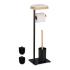 Súprava WC kefy s úložným priestoromS týmto štýlovým toaletným komorníkom budete mať toaletný papier a toaletnú kefu vždy po ruke. Či už v kúpeľni alebo na toalete pre hostí, voľne stojacu toaletnú súpravu je možné umiestniť flexibilne a nemusí byť pripevnená na stenu. Dekoratívne prevedenie WC stojana z prírodného bambusu a železa sa hodí do každej kúpeľne. Vymeniteľná hlavica kefky a odnímateľná plastová nádoba na kefku zaisťujú potrebnú hygienu.Stojanový držiak na toaletný papier s toaletnou kefouPraktická kombinácia držiaka papiera a štetcaHygienicky vymeniteľná hlavica kefky - Obsahuje náhradné hlaviceOdnímateľné vnútorné vedro v nádobe na kefuS hornou policou na vlhčené obrúsky, mobilný telefón atď.Vyrobené z prírodného bambusu a železaIdeálne do kúpeľne alebo na toaletu pre hostíToaletná zostava v detaileVeľkosť V x Š x H: cca 65 x 22 x 18 cmHmotnosť: cca 1,3 kgMateriál: železo, bambus, PPFarba: čierna, prírodnáDetailné rozmery WC setuDĺžka WC kefy: cca 34,5 cmHlava kefy V x H: cca 9,5 x 8 cmVnútorný závit D: cca 9,8 mmŠírka držiaka toaletného papiera: cca 13,5 cmÚložný priestor Š x H: cca 10 x 18 cmrozsah doručenia1x WC set v jednotlivých častiach2x náhradná hlavica kefkyS montážnym materiálombez dekorácieilustrované pokynyMateriálové zloženie60% železa20% bambus20% plastuRD 10049115_0