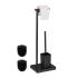 Toaletný komorník s držiakom na kotúč a kefuS týmto elegantným toaletným komorníkom budete mať toaletný papier a toaletnú kefu vždy po ruke. Či už v kúpeľni alebo na toalete pre hostí, voľne stojacu toaletnú súpravu je možné umiestniť flexibilne a nemusí byť pripevnená na stenu. Moderný dizajn WC stojana v materiálovom mixe nerez a bambus je skvelým pútačom v kúpeľni. Vymeniteľná hlavica kefky s 2 náhradnými hlavicami kefky a odnímateľná plastová nádoba na kefku zaisťujú potrebnú hygienu.Stojanový držiak na toaletný papierPraktická kombinácia držiaka papiera a štetcaVnútorná miska držiaka kefky je odnímateľnáHygienická - hlavica kefky ľahko vymeniteľnáStabilný stojan vďaka ťažkej základnej doskeS chráničmi proti poškriabaniu povrchuElegantný dizajn v materiálovom mixe nehrdzavejúcej ocele a bambusuPraktická súprava s 2 náhradnými hlavicami kefkyToaletná zostava v detaileVeľkosť V x Š x H: cca 64 x 27 x 22 cmHmotnosť: cca 1,2 kgMateriál: nehrdzavejúca oceľ, bambus, skloFarba: V rôznych farbáchDetailné rozmery WC setuDržiak na toaletnú kefu V x H: cca 14,5 x 10,5 cmVnútorný držiak WC kefy na pohár V x H: cca 10,5 x 8,5 cmWC kefa celková V x H: cca 35 x 8 cmHlava kefy V x H: cca 10 x 8 cmVnútorný závit D: cca 9,2 cmŠírka držiaka toaletného papiera: cca 12,5 cmŠírka náhradnej rolky držiaka: cca 14 cmrozsah doručenia1x WC set v jednotlivých častiach2x náhradná hlavica kefkyS montážnym materiálombez dekorácieilustrované pokynyMateriálové zloženie80% nehrdzavejúca oceľ10% bambus10% plastuRD 10049120_46
